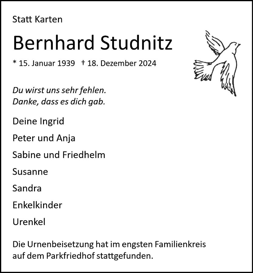 Bernhard Studnitzgestorben am 18. Dezember 2024