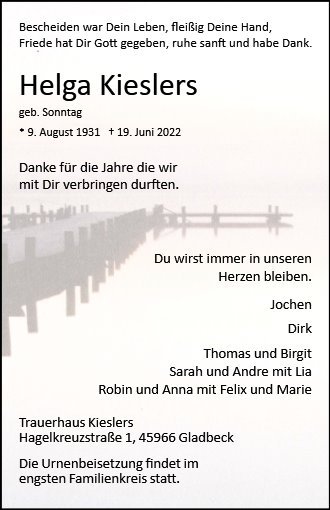 Helga Kieslers geb. Sonntag