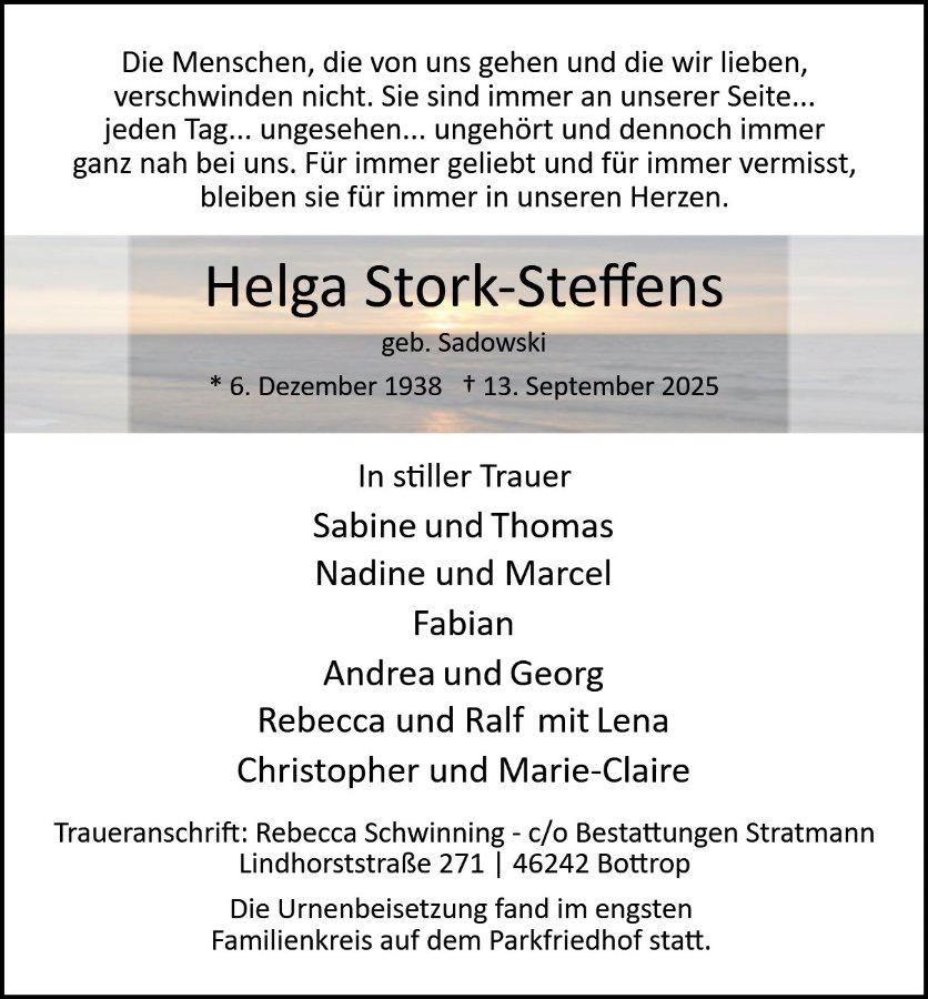 Helga Stork-Steffens geb. Sadowski