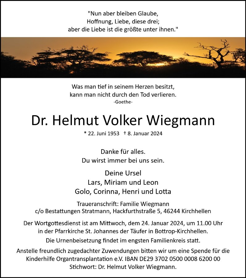 Dr. Helmut Volker Wiegmanngestorben am 8. Januar 2024